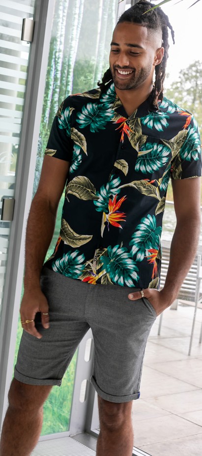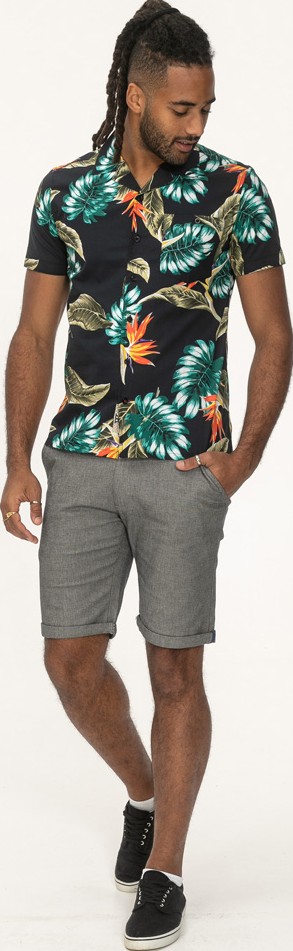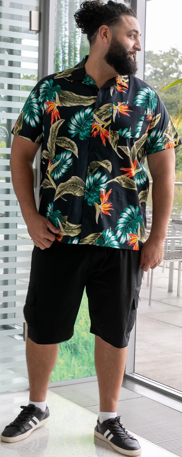 Vodič za veličinu - D555 Selby Hawaiian AOP Short Sleeve Revere Collar Shirt Black