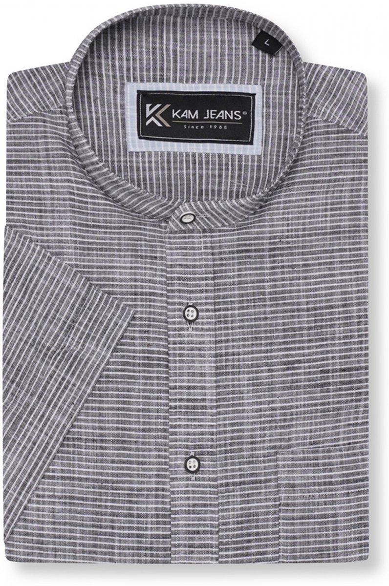 Vodič za veličinu - Kam Jeans 6334 Striped Grandad Short Sleeve Shirt Charcoal