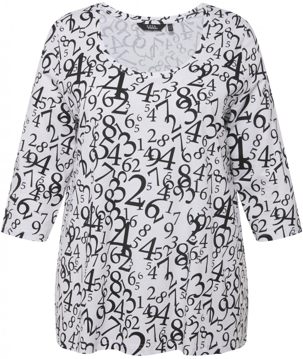 Vodič za veličinu - Ulla Popken Number Print 3/4 Sleeve Tee Snow White