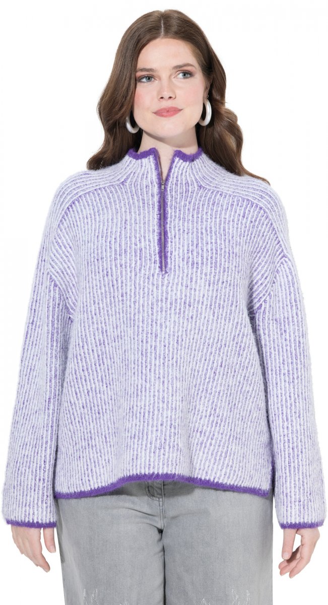 Vodič za veličinu - Ulla Popken Striped Knit Long Sleeve Troyer Collar Sweater Purple