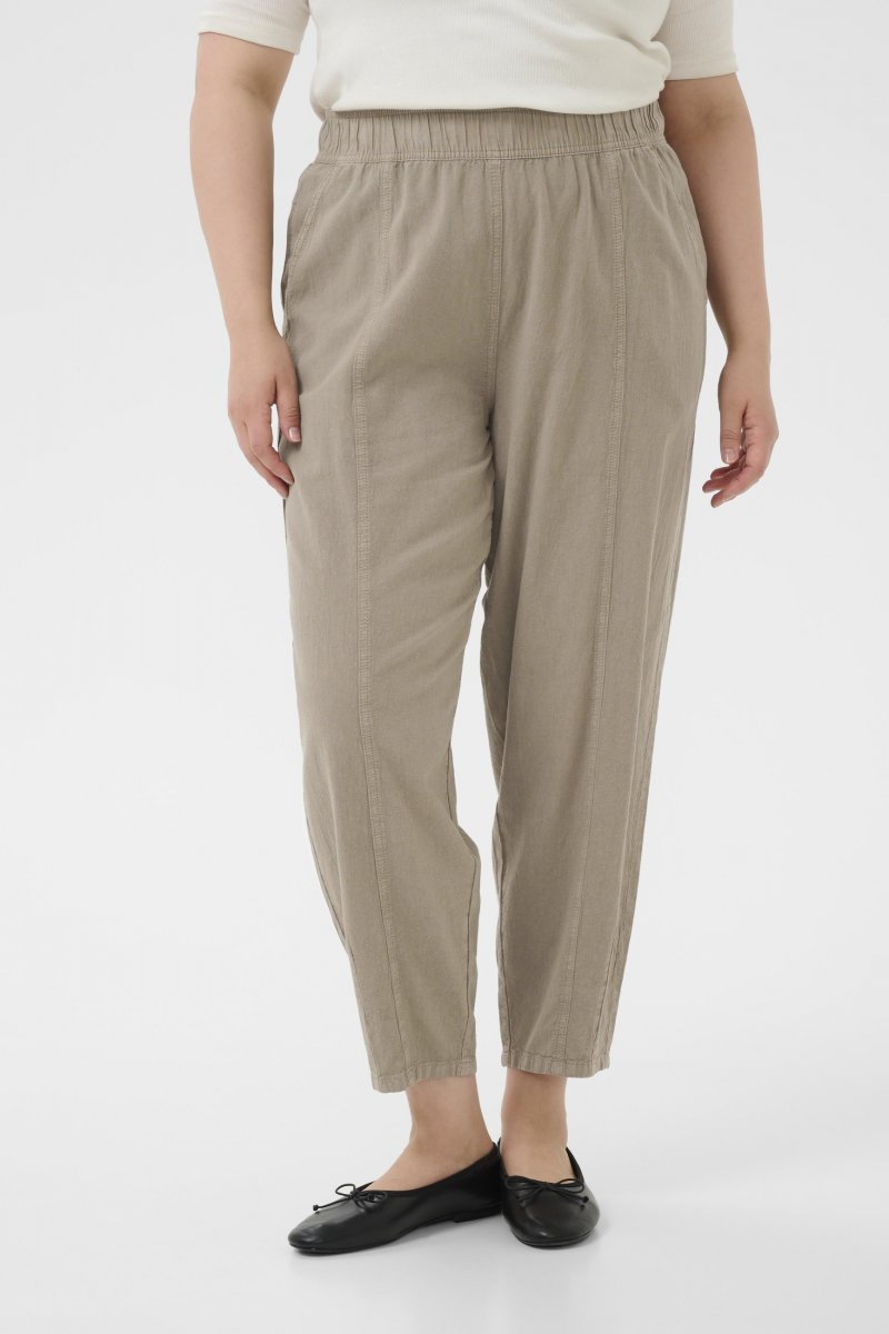 HlačeDostupno u veličinama 42–54Od brenda Kaffe CurveProizvedeno od 100% pamukaKlasičan krojBež bojaKliknite ovdje za prikazivanje vodiča za veličinu