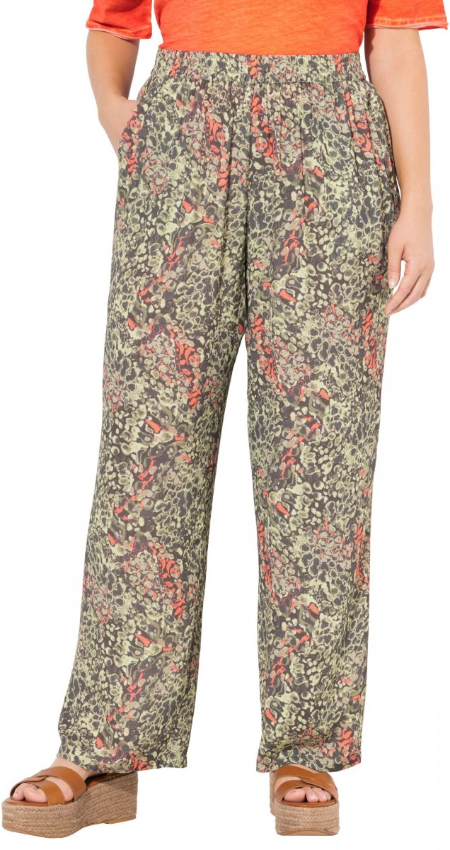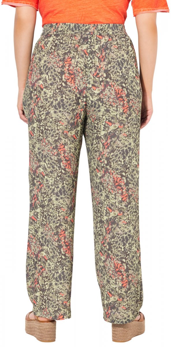 Ulla Popken Crocodile Print Elastic Waist Pants Olive Grey