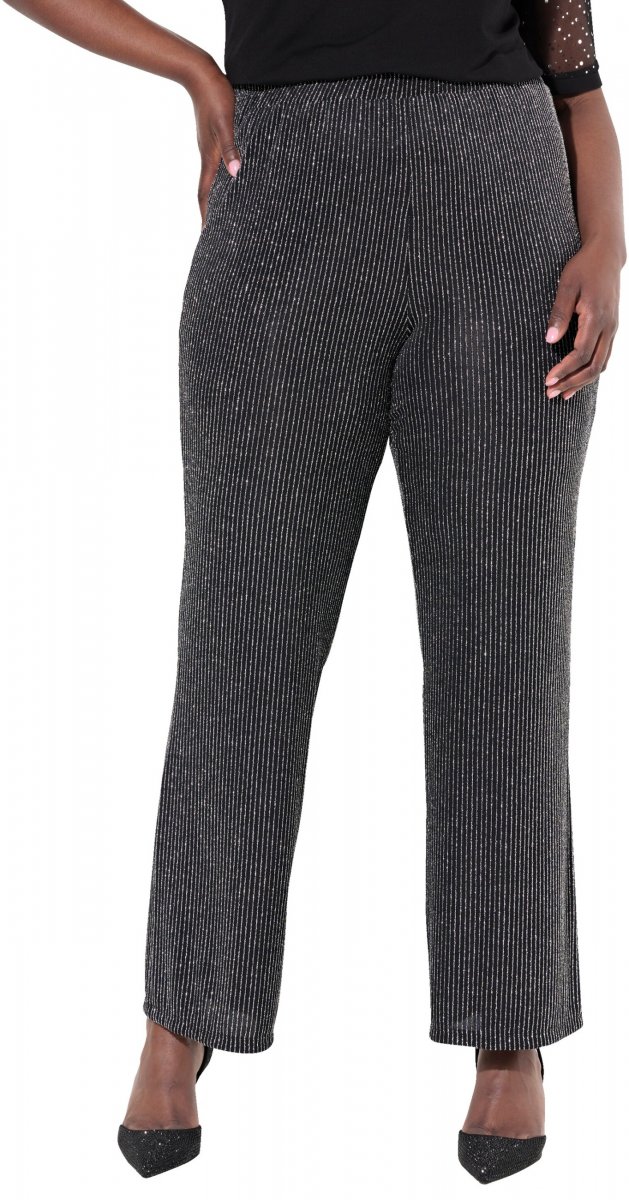 Ulla Popken Sparkling Pinstripe Elastic Waist Pants Black